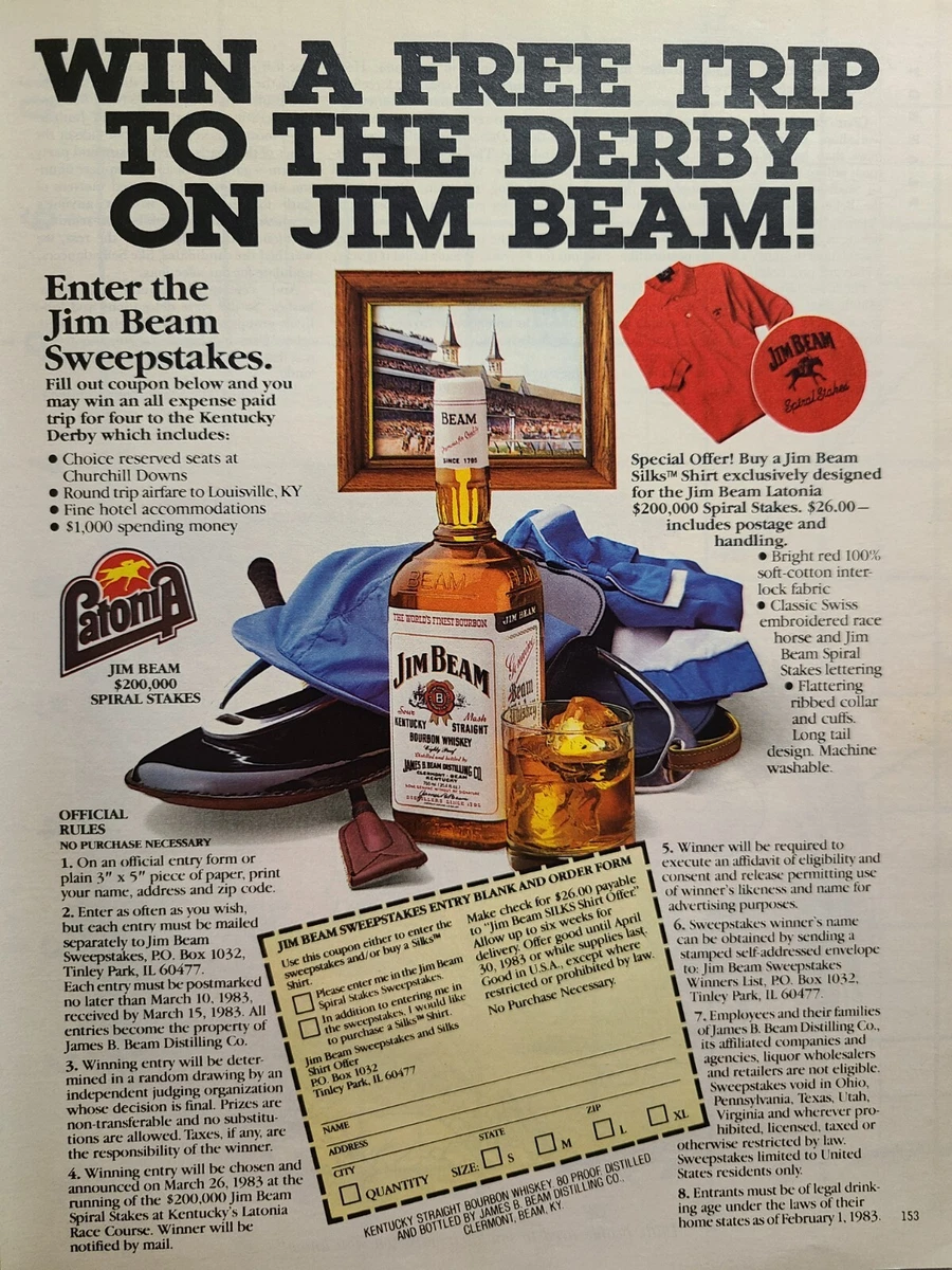 Vintage Print Ad 1983 Jim Beam Bourbon Whiskey Kentucky Derby Trip